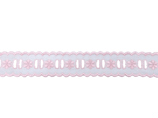 Δαντέλα βαμβακερή ασπροκέντημα – μπροντερί σε φάρδος 3 εκατοστών. Η τιμή αφορά το ένα μέτρο.