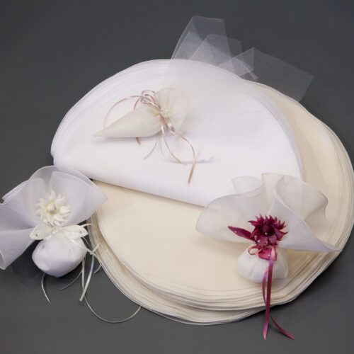 Βουάλ Μαντήλι Τετράγωνο με Μισινέζα σε διάσταση 39 x 39 εκατοστά κατάλληλο για μπομπονιέρα γάμου. Η συσκευασία περιέχει 100 τεμάχια ανά χρώμα.