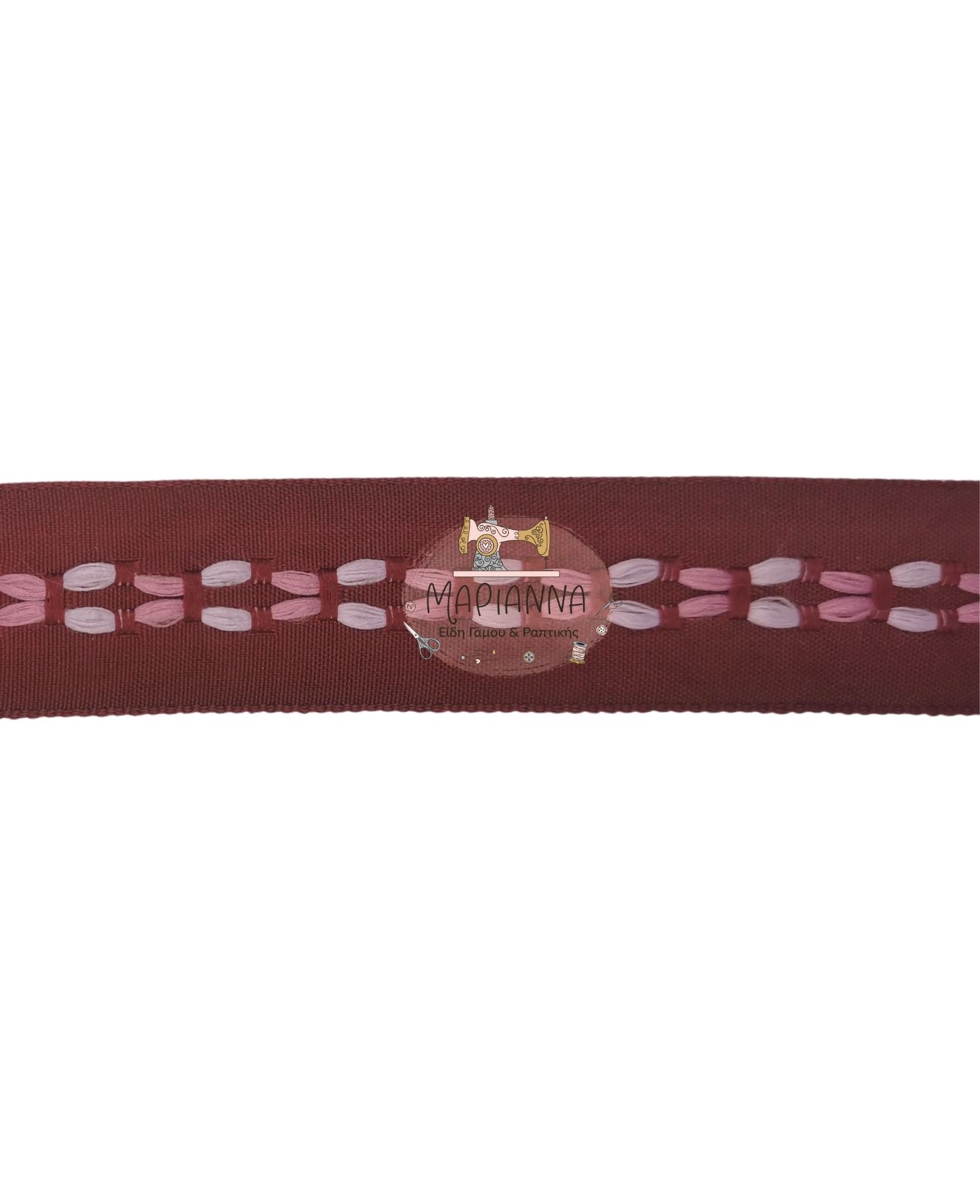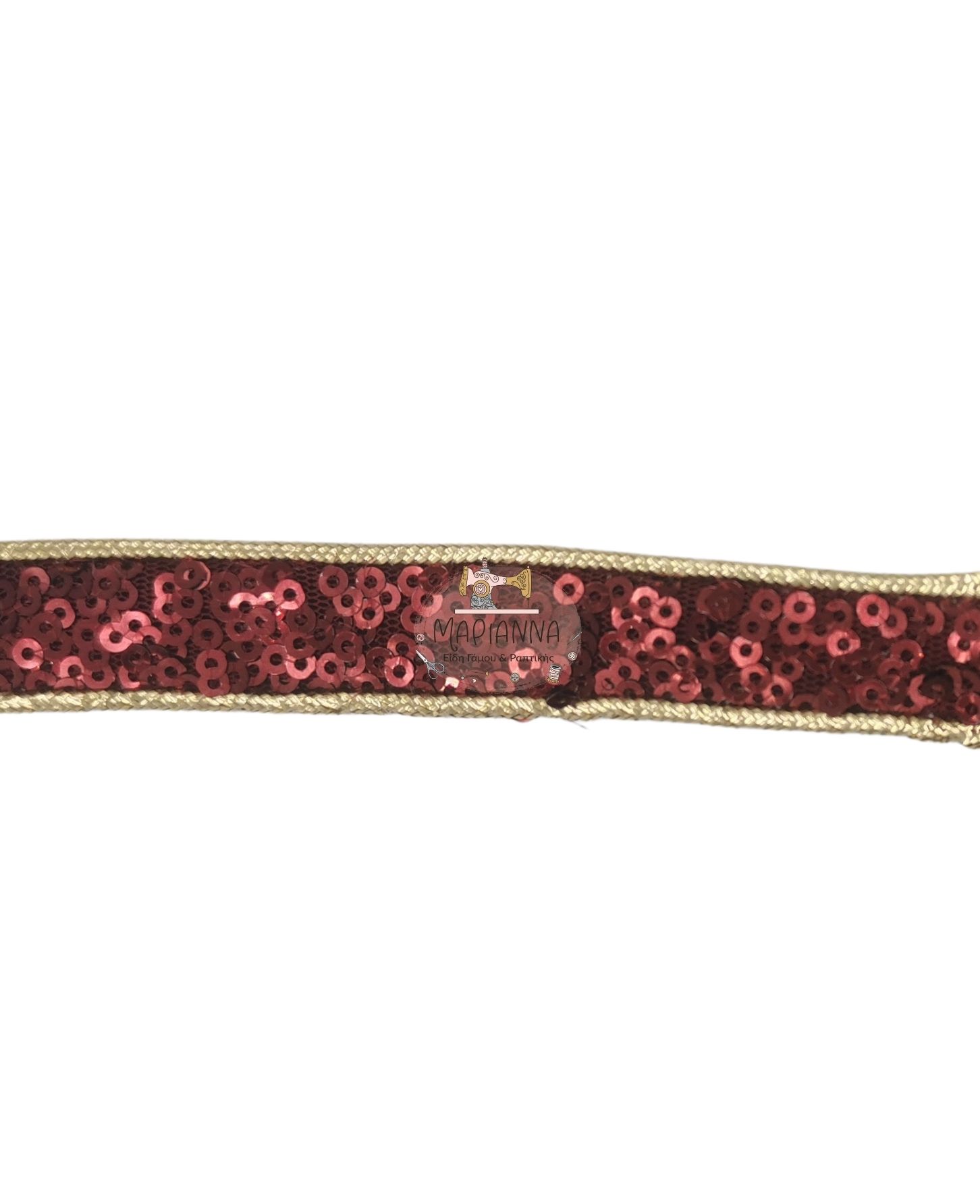 Τρέσα μπορντό με διαφάνεια, χρωματιστές χάντρες και φάρδος 2,9 εκατοστά. Η τιμή αφορά το ένα μέτρο.