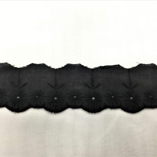 Δαντέλα βαμβακερή – ασπροκέντημα μαύρη σε φάρδος 2 εκατοστά. Η τιμή αφορά το ένα μέτρο.