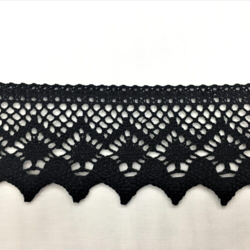 Δαντέλα βαμβακερή – κοπανέλι μαύρη με φάρδος 6 εκατοστά. Η τιμή αφορά το ένα μέτρο.