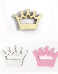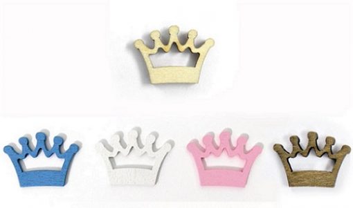 Ξύλινη διακοσμητική κορώνα 2,5 x 1,8 εκατοστών για στολισμό μπομπονιέρας. Η τιμή αφορά την μια συσκευασία των 100 τεμαχίων ανά χρώμα.