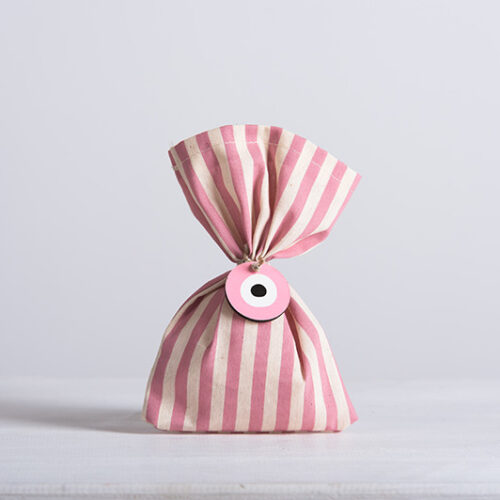 Πουγκί υφασμάτινο ριγέ εκρού με βεραμάν σε διάσταση 12 x 17 εκατοστών. Το προιόν βρίσκεται σε συσκευασίες των 10 τεμαχίων. Η τιμή αφορά το τεμάχιο.