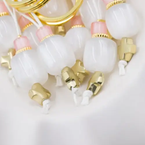 Μαρτυρικό μπεγλέρι με λευκές και ροζ χάντρες, σταυρός ξύλινος λευκός. Οι φωτογραφίες έχουν υποστεί επεξεργασία και τα χρώματα ίσως να διαφέρουν λίγο στην πραγματικότητα. Η τιμή αφορά συσκευασία 50 τεμαχίων.