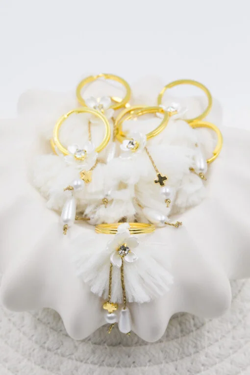 Μαρτυρικό μπρελόκ με ακρυλικό λουλούδι, πέρλες και επιχρυσωμένος σταυρός. Οι φωτογραφίες έχουν υποστεί επεξεργασία και τα χρώματα ίσως να διαφέρουν λίγο στην πραγματικότητα. Η τιμή αφορά συσκευασία 50 τεμαχίων.