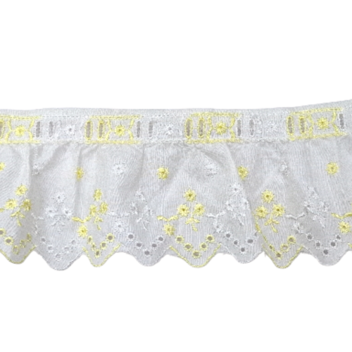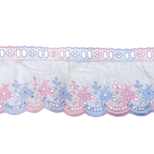Δαντέλα βαμβακερή ασπροκέντημα σε φάρδος 10 εκατοστών. Η τιμή αφορά το ένα μέτρο.
