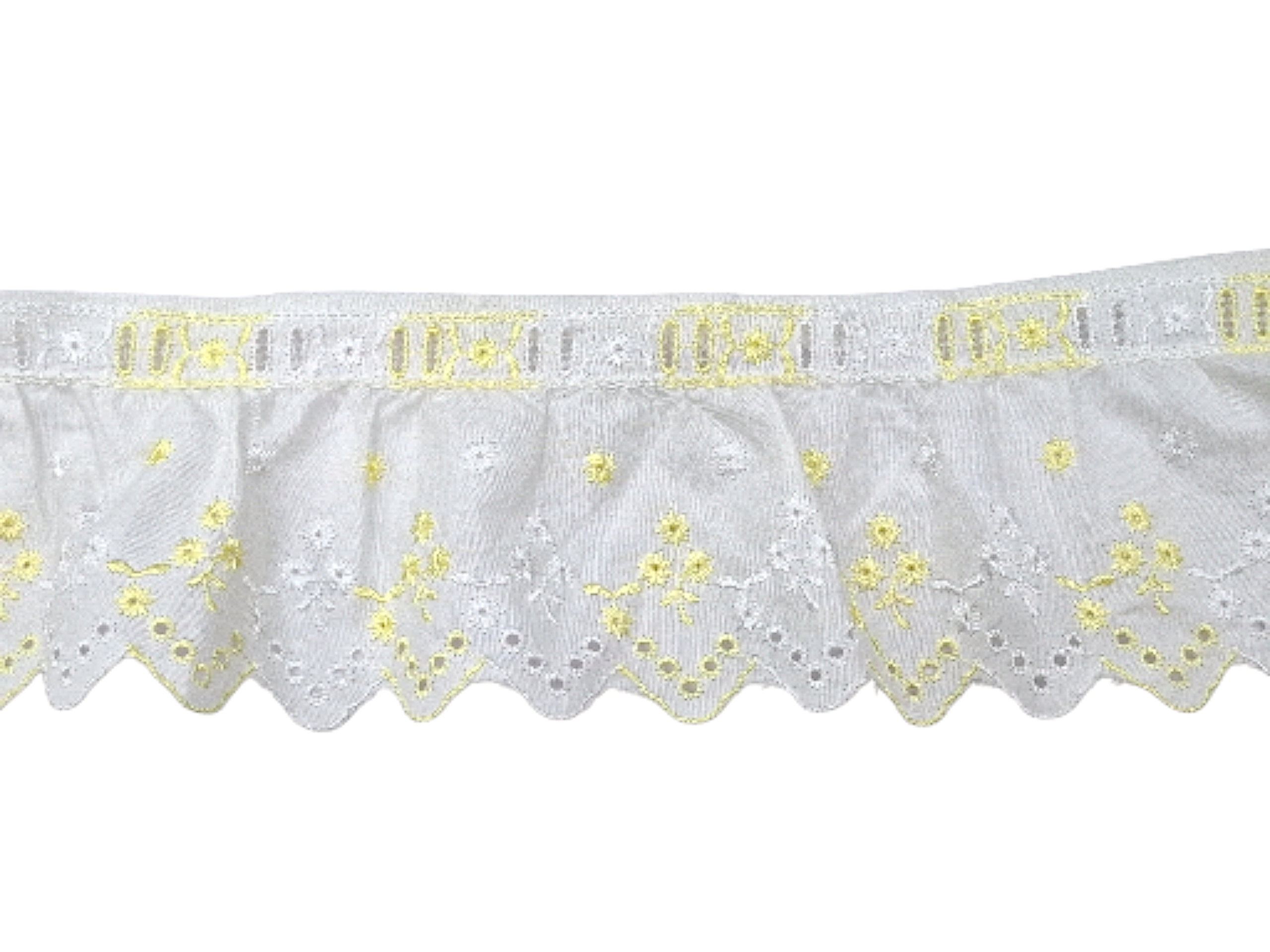 Δαντέλα βαμβακερή ασπροκέντημα σε φάρδος 10 εκατοστών. Η τιμή αφορά το ένα μέτρο.