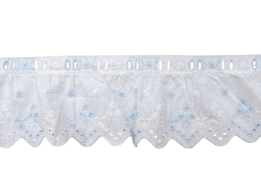 Δαντέλα βαμβακερή ασπροκέντημα σε 3 διαφορετικά χρώματα με φάρδος 7 εκατοστών. Η τιμή αφορά το ένα μέτρο.
