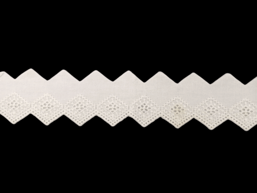 Δαντέλα ασπροκέντημα – μπροντερί σε υπόλευκο με φάρδος 3,5 εκατοστών. Η τιμή αφορά το ένα μέτρο.