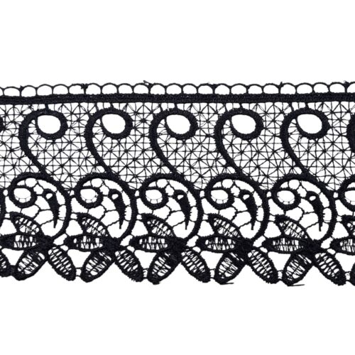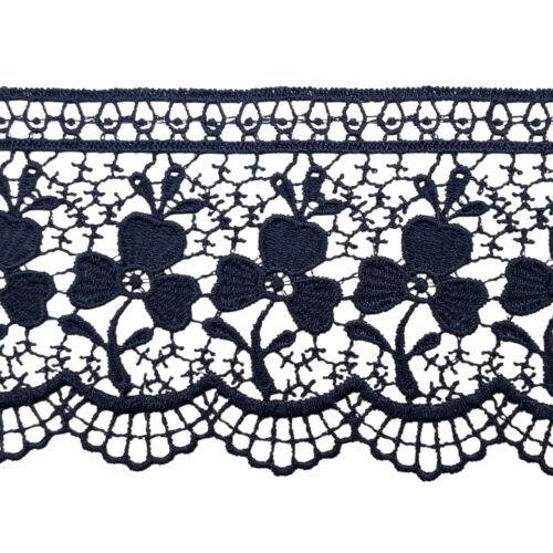 Δαντέλα κιπούρ μαύρη ή μπλε σκούρη σε φάρδος 8 εκατοστά. Η τιμή αφορά το ένα μέτρο.