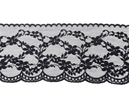 Δαντέλα νάυλον μαύρη με φάρδος 9,5 εκατοστών. Η τιμή αφορά το ένα μέτρο.