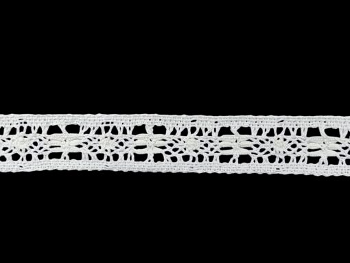 Δαντέλα βαμβακερή κοπανέλι ατραντέ σε λευκό με φάρδος 3,2 εκατοστών. Η τιμή αφορά το ένα μέτρο.