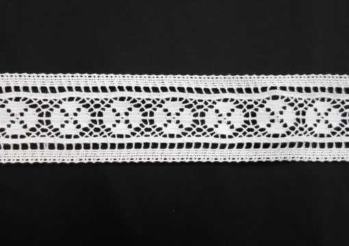 Δαντέλα βαμβακερή (κοπανέλι) λευκή με φάρδος 5 εκατοστών. Η τιμή αφορά το ένα μέτρο.