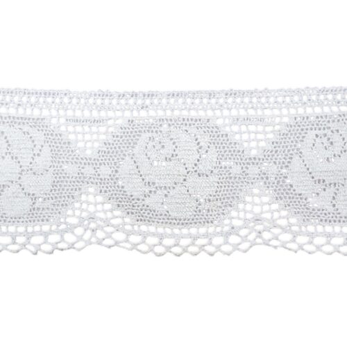 Δαντέλα βαμβακερή κοπανέλι ατραντέ λευκή με φάρδος 6,5 εκατοστών. Η τιμή αφορά το ένα μέτρο.