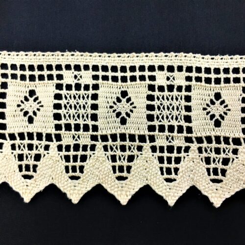 Δαντέλα βαμβακερή ατραντέ (κοπανέλι) λευκή ή εκρού με φάρδος 8 εκατοστών. Η τιμή αφορά το ένα μέτρο.