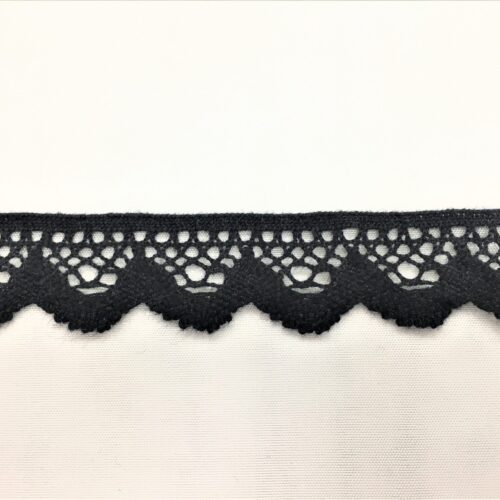 Δαντέλα βαμβακερή κοπανέλι μαύρη με φάρδος 1,5 εκατοστά. Η τιμή αφορά το ένα μέτρο.