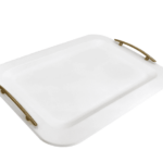 Δίσκος ΙΝΟΧ 18C επίχρυσος ματ με επίχρυσα ματ με επίχρυσα γυαλιστερά χερούλια σε διάσταση μήκος 43εκ. και πλάτος 30 εκατοστά.