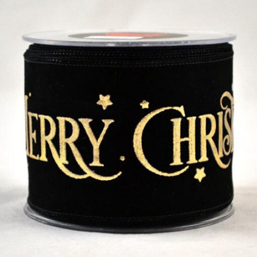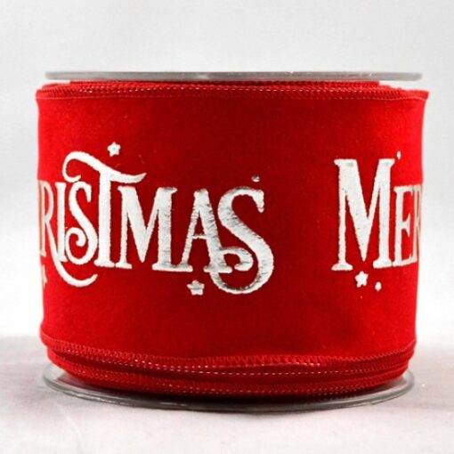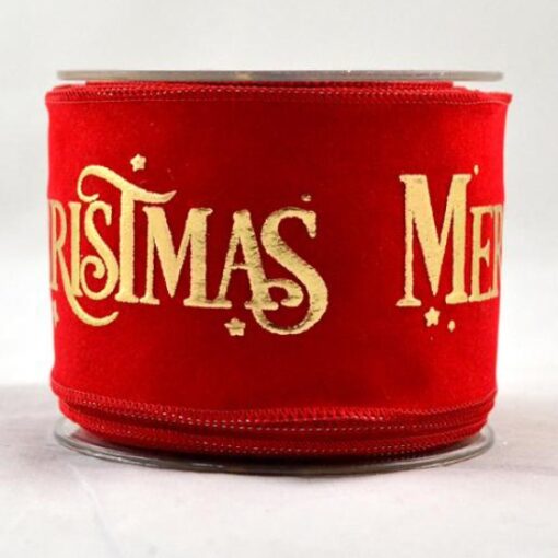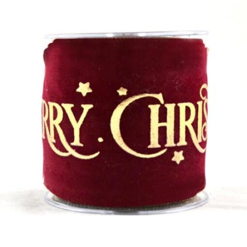Κορδέλα Χριστουγεννιάτικη Βελούδο Merry Christmas με σύρμα σε φάρδος 6 εκατοστών σε διάφορα χρώματα.