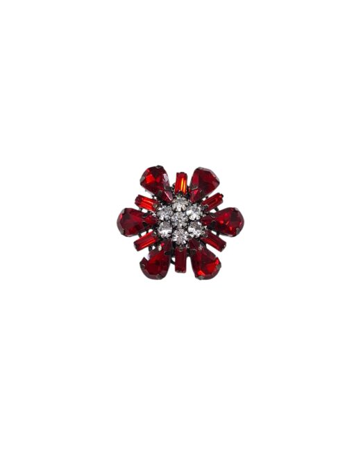 Κουμπί μεταλλικό κόκκινο με πέτρες και στρας με διάμετρο 3,5 εκατοστών.