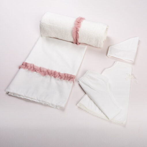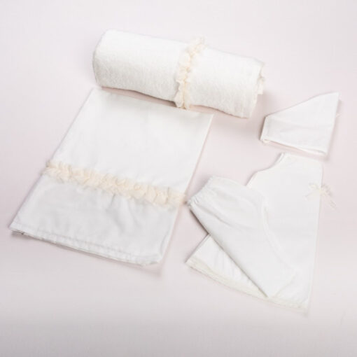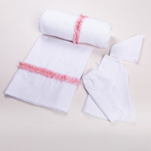 Σετ λαδόπανο με chiffon κορδέλα για κορίτσι. Το σετ περιλαμβάνει λαδόπανο , πετσέτα και εσώρουχο με το καπελάκι.