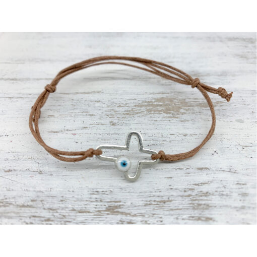 Μαρτυρικά Βραχιόλια Με Ασημί Σταυρό Και Ματάκι κωδ.ΜΑΡ11