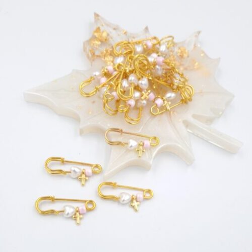 Μαρτυρικό πέτου, λευκό κορδόνι, κορδέλα πλεξούδα λευκό-μπεζ-μπλε, σταυρός. Η τιμή αφορά μια συσκευασία των 50 τεμαχίων.