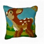 Αυτό το κιτ κεντήματος περιλαμβάνει όλα όσα χρειάζεστε για να κεντήσετε ένα σταμπωτό μαξιλάρι σε καμβά σμύρνα. Για να εξασφαλίσετε την επάρκεια των νημάτων που περιέχονται στη συσκευασία, ξεκινήστε το κέντημα σας από την πάνω αριστερή γωνία συνεχίστε προς τα δεξιά, κεντώντας μία σειρά μισή σταυροβελονιά. Στο τέλος της σειράς, συνεχίστε προς την αντίθετη κατεύθυνση, δηλ. προς τα αριστερά, συμπληρώνοντας τη σταυροβελονιά σας, μέχρι το σημείο εκκίνησης. Πρώτα κεντήστε τα μικρά μέρη του σχεδίου. Το κέντημα σας μπορεί να πλυθεί σε θερμοκρασία έως 30οC, δε σιδερώνεται. Το κιτ περιλαμβάνει: