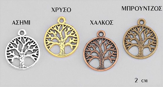 Μεταλλικό δέντρο της ζωής σε διάσταση 3,5×4εκ. και τρύπα 2,5χιλ. Το προϊόν διατίθεται σε συσκευασία των 50 τεμαχίων ανά χρώμα.