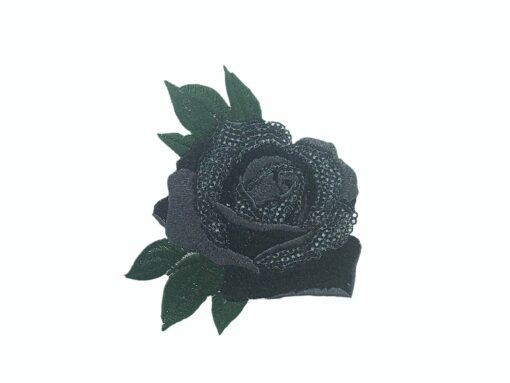Μοτίφ θερμοκολλητικό με σχέδιο τριαντάφυλλο σε μαύρο χρώμα και διάσταση 8,5 x 7,5 εκατοστά.