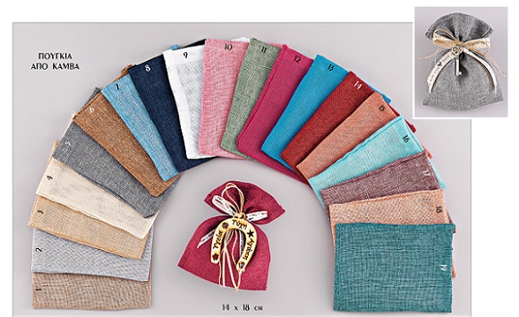 Πουγκί από καμβάς με κορδόνι σε διάσταση 12 x 16 εκατοστών. Το προϊόν διατίθεται σε συσκευασίες των 10 τεμαχίων ανά χρώμα.