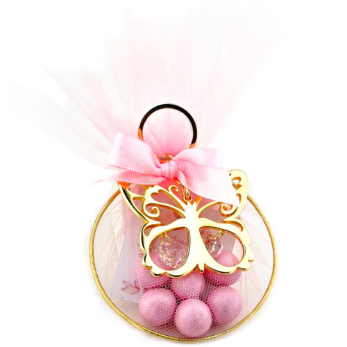 Μοναδική πολυτελής μπομπονιέρα βάπτισης, μπρελόκ με σιελ ματάκι από εξαιρετικής ποιότητας μέταλλο.