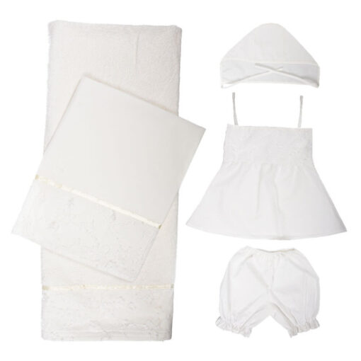 Σετ λαδόπανο δαντέλα με λουλούδια 3D για κορίτσι. Το σετ περιλαμβάνει την πετσέτα, το σεντόνι και την αλλαξιά του μωρού.