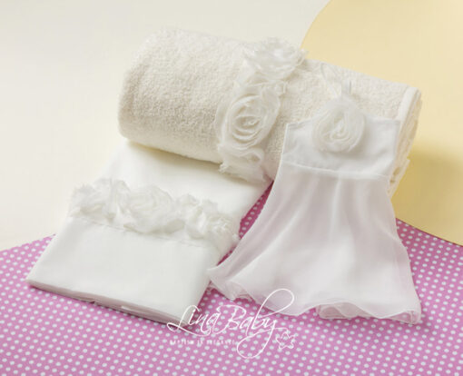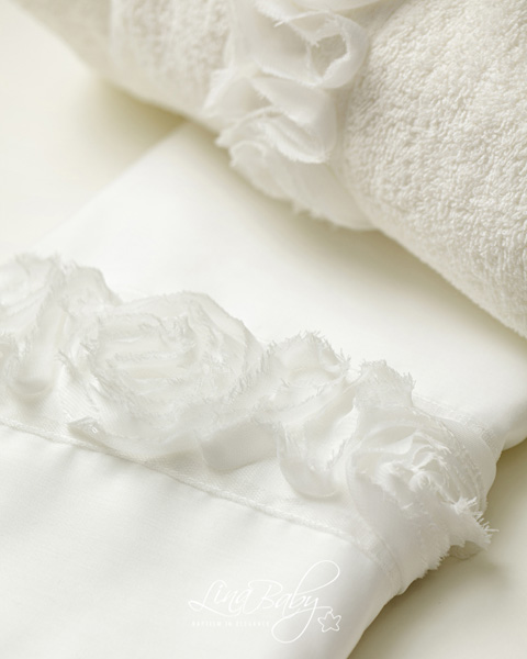 Αναδείξτε τη φινέτσα σε κάθε ξεχωριστή στιγμή με το υπέροχο βαμβακερό σετ λαδόπανων σε εκλεπτυσμένο off-white χρώμα. Το σετ “Καλυψώ” ξεχωρίζει χάρη στην εντυπωσιακή τρέσα από τρισδιάστατα υφασμάτινα τριαντάφυλλα, που χαρίζει ρομαντική, αέρινη διάθεση.Τα φινετσάτα εσώρουχα από ιταλική μουσελίνα ολοκληρώνουν το σετ, προσφέροντας απαλότητα και άνεση στο μωράκι σας, ενώ η λεπτομερής σχεδίαση αποπνέει υψηλή αισθητική και premium χαρακτήρα.Ιδανική επιλογή για βαπτίσεις, ξεχωριστές περιστάσεις ή για όσους αγαπούν τη διαχρονική κομψότητα με μοντέρνα φινέτσα. Πετσέτα 80*140*450gr2. Πετσέτα παπά 30*40*450gr2. Ολες οι πετσέτες της Lina Baby φέρουν την ετικέτα STANDARD 100 by OEKO-TEX® (Αυτό σημαίνει ότι τα προϊόντα δεν περιέχουν επιβλαβή επίπεδα χημικών ουσιών. )