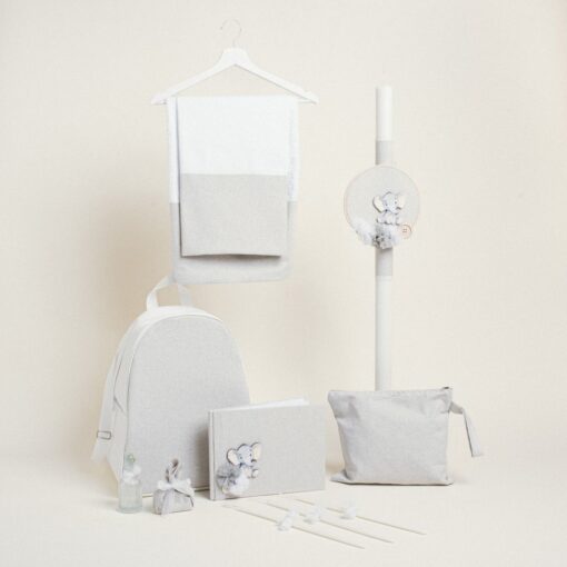 Ένα γλυκό και παιχνιδιάρικο σετ βάπτισης με θέμα το ελεφαντάκι, ιδανικό για μια βάπτιση γεμάτη χαρά, τρυφερότητα και παιδική αθωότητα.