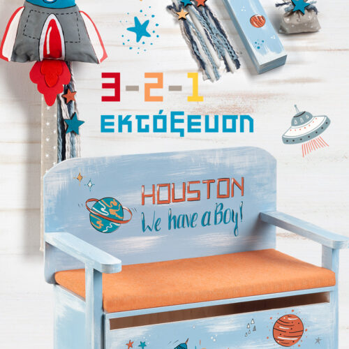 -Βαπτιστικό κουτί Ξύλινο παγκάκι-θρανίο, ζωγραφισμένο στο χέρι