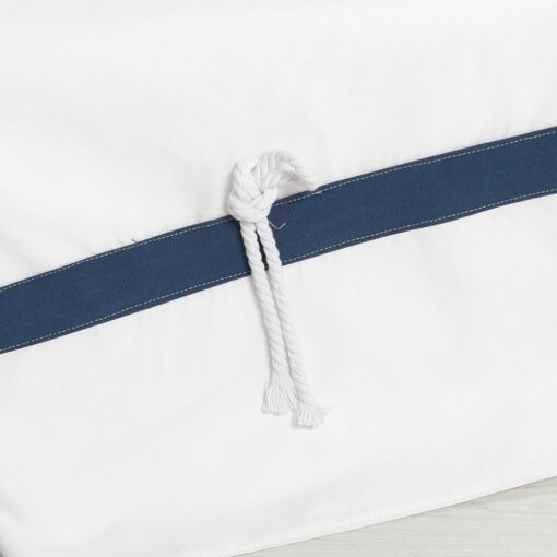 Λαδόπανα: Πλήρες σετ (πετσέτες, εσώρουχα) από 100% βαμβάκι εξαιρετικής ποιότητας, διακοσμημένα με φαρδιά navy blue φάσα και λευκό ναυτικό κορδόνι-φούντα.