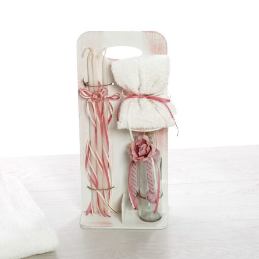 ✔ Σετ λαδιού με μπουκαλάκι, σαπούνι και κεράκια, διακοσμημένα με κορδέλες και ρομαντικά στοιχεία.