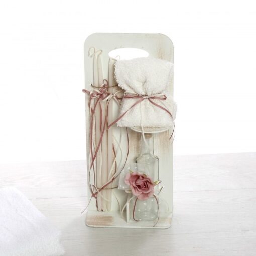 ✔ Σετ λαδιού με μπουκαλάκι, σαπούνι και κεράκια, διακοσμημένα με φιόγκους και vintage floral στοιχεία.
