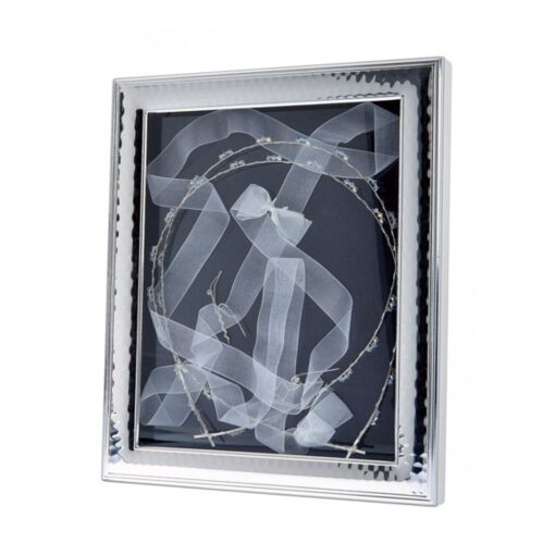 Ασημένια στεφανοθήκη παραλληλόγραμμη γυαλιστερή με λακαριστό λευκό ξύλο