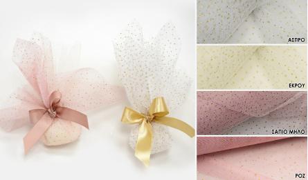 Τούλι Γκλίτερ για μπομπονιέρες σε διάσταση 29×29 εκατοστών. Η τιμή αφορά την συσκευασία των 100 τεμαχίων.