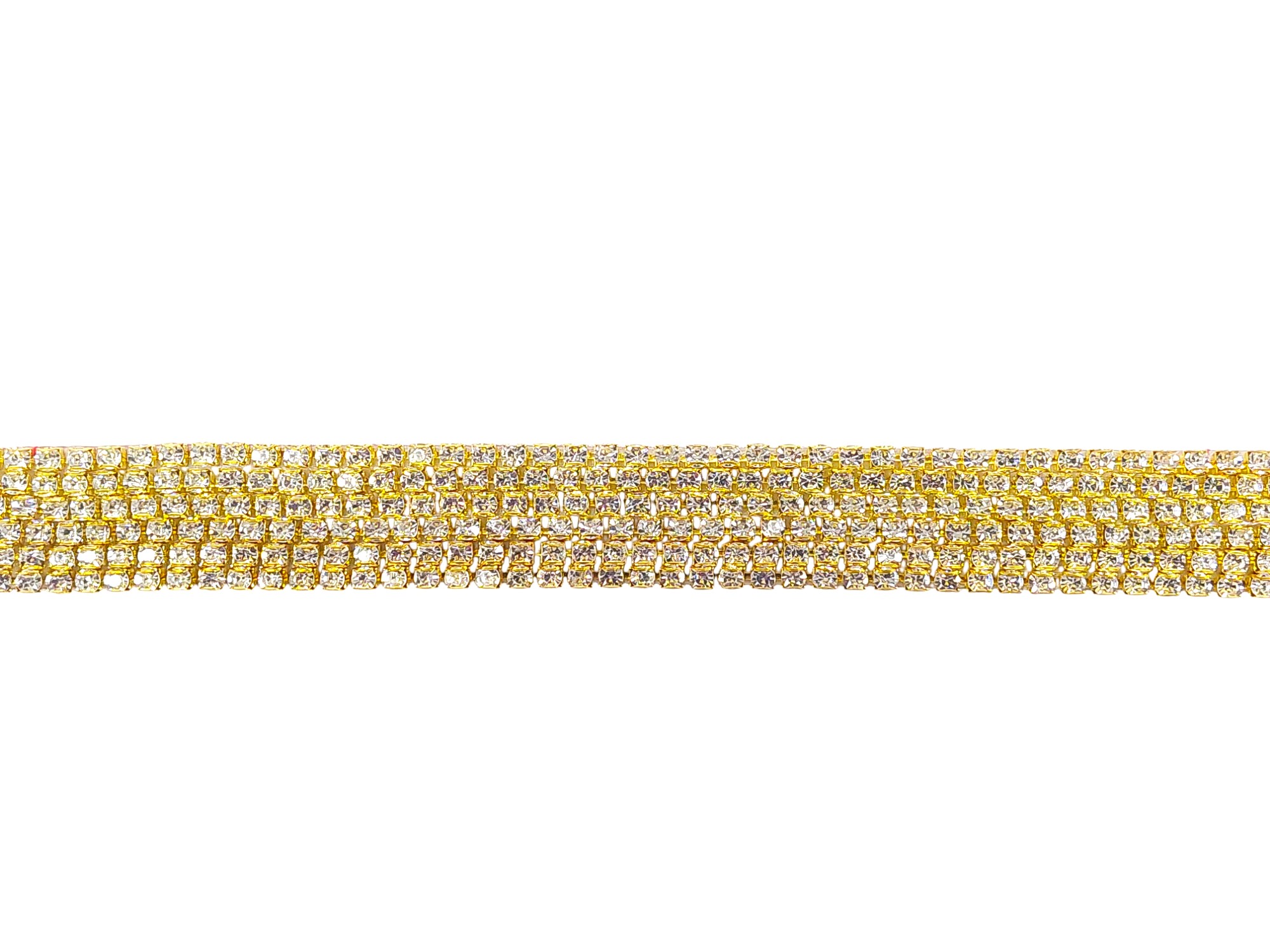 Τρέσα χρυσή θερμοκόλλητη με στρας τετράσειρη σε φάρδος 1,1 εκατοστών.