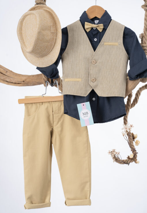 - Περιλαμβάνει: παντελόνι, πουκάμισο, γιλέκο και παπιγιόν.
