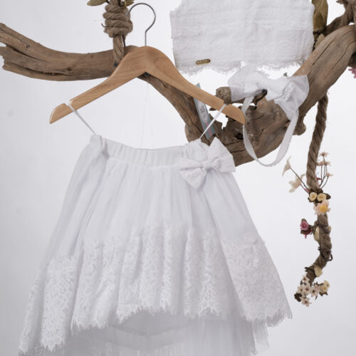 - Περιλαμβάνει: μπλούζα με έναν ώμο, φούστα με λάστιχο στη μέση και κορδέλα.