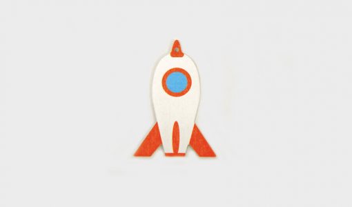 Ξύλινος πύραυλος σε διάστημα σε διάσταση 5,6 x 8 εκατοστών. Το προϊόν διατίθεται σε συσκευασίες των 25 τεμαχίων.